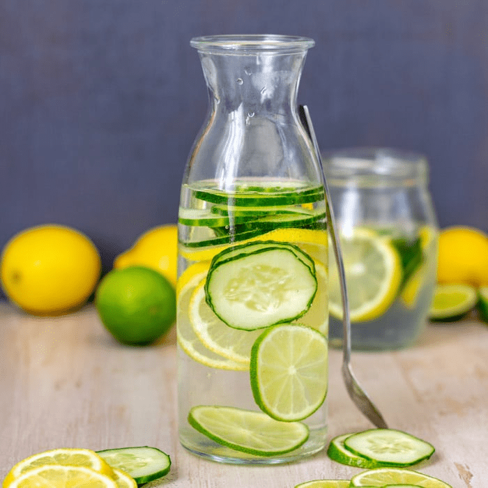 - Cucumber water: Slice ½ cucumber, add to 16–20 oz water overnight in fridge. Drink upon waking.