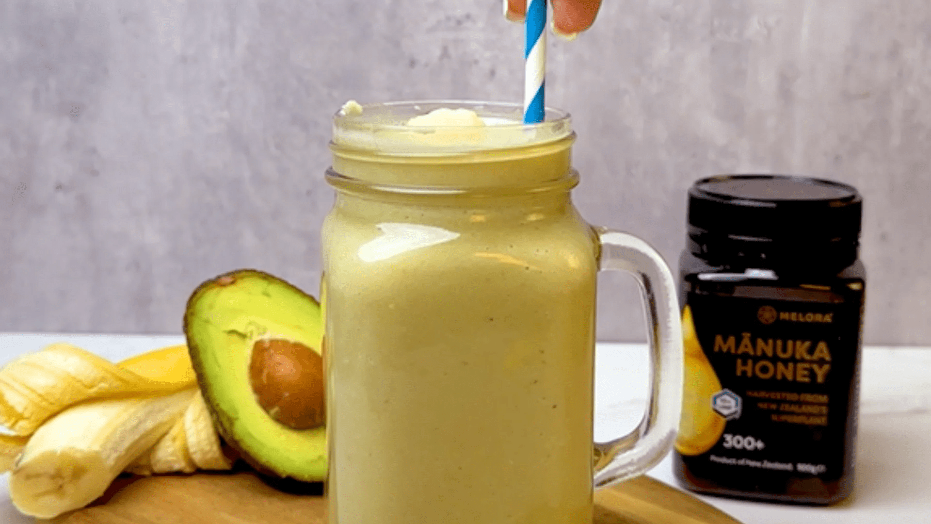 Blend everything until smooth and creamy. Taste it—you’ll notice the nutty richness of almonds, the tropical sweetness of banana, the silky depth of avocado, and the golden sweetness of honey. It’s filling enough to be a breakfast on its own or a mid-afternoon pick-me-up.