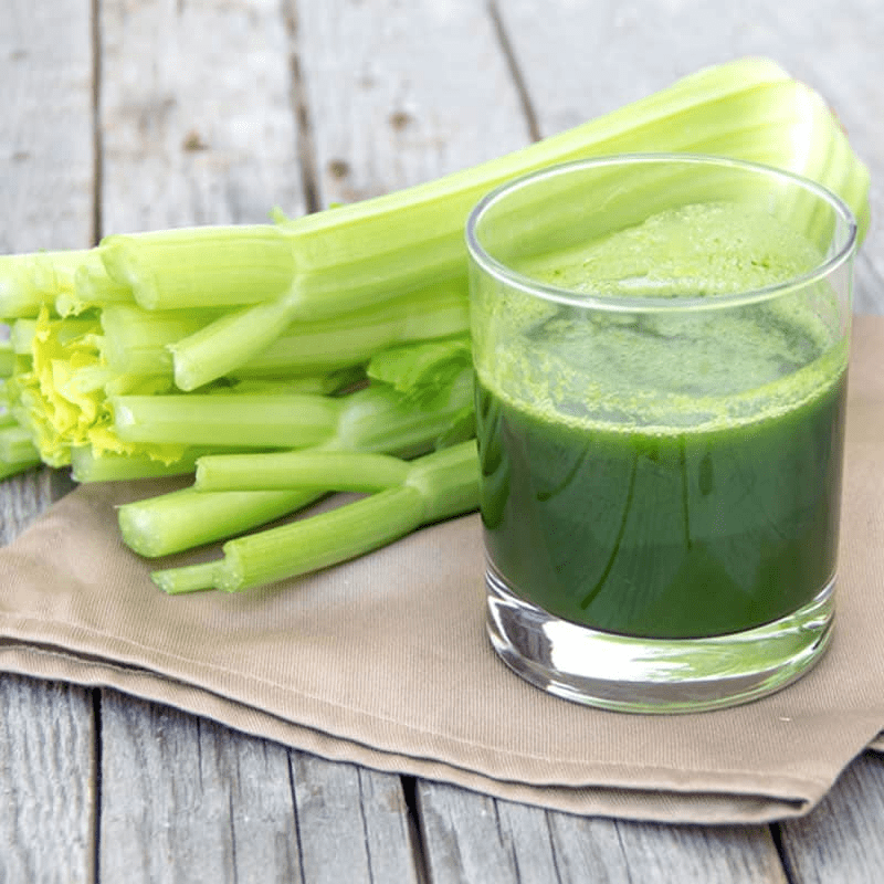 Rinse a bunch of fresh celery, chop into pieces, and run through a juicer. Aim for 8-16 ounces. Drink it fresh, ideally in the morning.