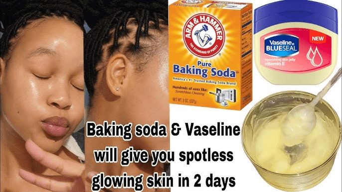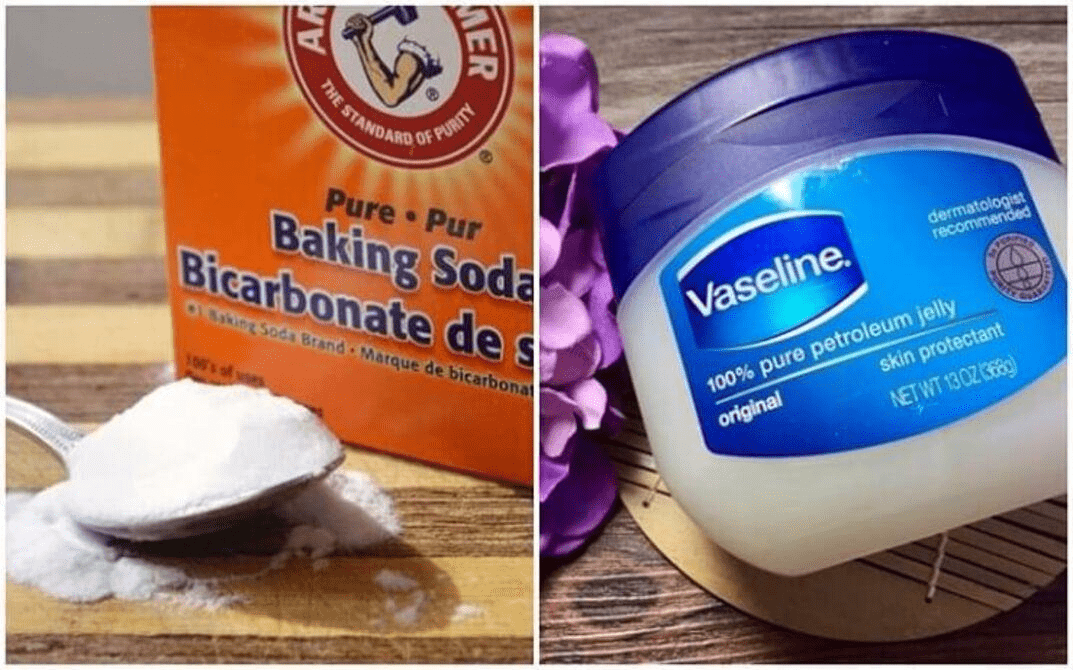 Vaseline (locks) + Baking Soda (exfoliates) + Milk (nourishes)