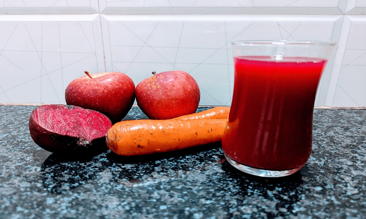 One medium carrot + one small beetroot + one crisp apple.